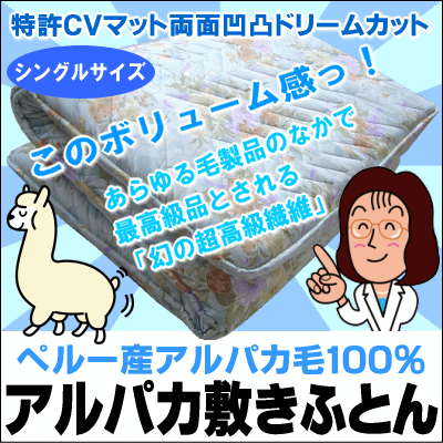 【あす楽対応】国産最高品質に挑戦!特許CV固わた+アルパカ毛100%の理想の敷布団シングルサイズ100×210cm[▼送無]【レビューを書いて送料無料】日本製敷き布団 【smtb-F】【HLS_DU】 価格: 16,000円 レビュー評価:4.46 レビュー数:138 【setsuden_bedding】 フレームを利用しています。見えない方はこちらをどうぞ♪ アルパカ敷き布団 シングルロングサイズ サイズ 100×210cm 色 ピンク系(柄)・ブルー系(柄) 生地 (表・裏)綿100% 充填物 CVカタわた:ポリエステル100% 巻わた:アルパカ毛100% 製品総重量 4.7kg(詰め物重量4.5kg) 製造国 日本製 送料 1配送につき800円(1枚でも2枚でも) 同一場所へのお届けなら1配送となります 【あす楽対応_東北】 【あす楽対応_関東】【あす楽対応_甲信越】 【あす楽対応_北陸】【あす楽対応_東海】 【あす楽対応_近畿】 Supported by 楽天ウェブサービス |