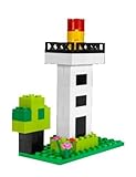 5歳以上の子ども向けのレゴ基本ブロックや、ミニフィギュア(男の子と女の子)、ドア、窓、タイヤや花などの部品が入ったセット。遊んだあとは楽しくお片づけできるバケツ入り。作り方のアイデアが載った組み立て説明リーフレットとブロックはずし付き。