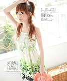 my closet 当店オリジナル仕様 ふんわり花柄シフォンチュニックキャミワンピース グリーン