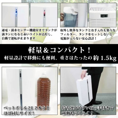 more+life design 除湿機 WHITE MCE-3362W <34196> ![]() 新品の出品:5,980円 中古品の出品:1,000円 コレクター商品の出品:1,299円 カスタマーレビュー コンパクト&スタイリッシュデザインの除湿機! お部屋やクローゼットのジメジメから快適空間へ。お部屋やクローゼットのジメジメから快適な空間へ。コンパクトだから、 置き場所にも困らない便利でスタイリッシュな除湿機です。 湿った空気を吸収して水分だけがタンクに溜まり、乾いた空気が放出されます。◆花粉や埃対策に! 花粉や雨のシーズンで布団やシーツ、洋服の部屋干しの機会が増えますね。そんな時に除湿機を使えば水分を吸収し、普通の部屋干しよりも素早く乾きます。だから部屋干しの嫌なニオイの原因となる雑菌が繁殖しにくくなります。◆家計にやさしい低電力! 一般的な家庭で1日8時間の使用でたったの約11円。1ヶ月使 |