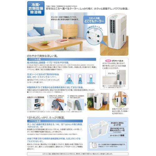 コロナ(CORONA) 冷風・衣類乾燥除湿機「どこでもクーラー」(除湿能力14L) クールホワイト CDM-1412(W) ![]() 新品の出品:46,840円 中古品の出品:5,847円 コレクター商品の出品:1,081円 カスタマーレビュー ◆さわやかで爽快な涼しい風。◆1日14lのしっかり、たっぷり除湿◆スピード部屋干し衣類乾燥・除湿方式:コンプレッサー方式・除湿能力:(50hz)12.0l/日・(60hz)14.0l/日・本体寸法:幅250×奥行386×高さ600mm・排水タンク容量:5.8lで自動停止・冷風機能:あり・温風機能:なし / 【冷風・除湿機について】お部屋の温度を下げることはできません。 (運転時の放熱により温度上昇がございます。)◆長所パワフルで除湿量が多い。 (特に室温の上昇する夏場に強い)◆短所本体がやや大きく重くなります。背面等より廃熱をしますので、お部屋の温度が上昇する場合がございます。 (狭いお部屋、 |